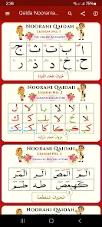 Appen inkluderar unika funktioner som upprepning av bokstäver, låsfunktion för att hjälpa yngre elever att fokusera på svåra ljud, samt enkel navigering för att snabbt kunna hitta specifika lektioner. Med 17 lektioner som täcker allt från korta vokaler till avancerade uttalsövningar, erbjuder Qaida Noorania en omfattande resurs för både barn och nybörjare som vill bemästra arabisk läsning och förståelse av Koranen.
